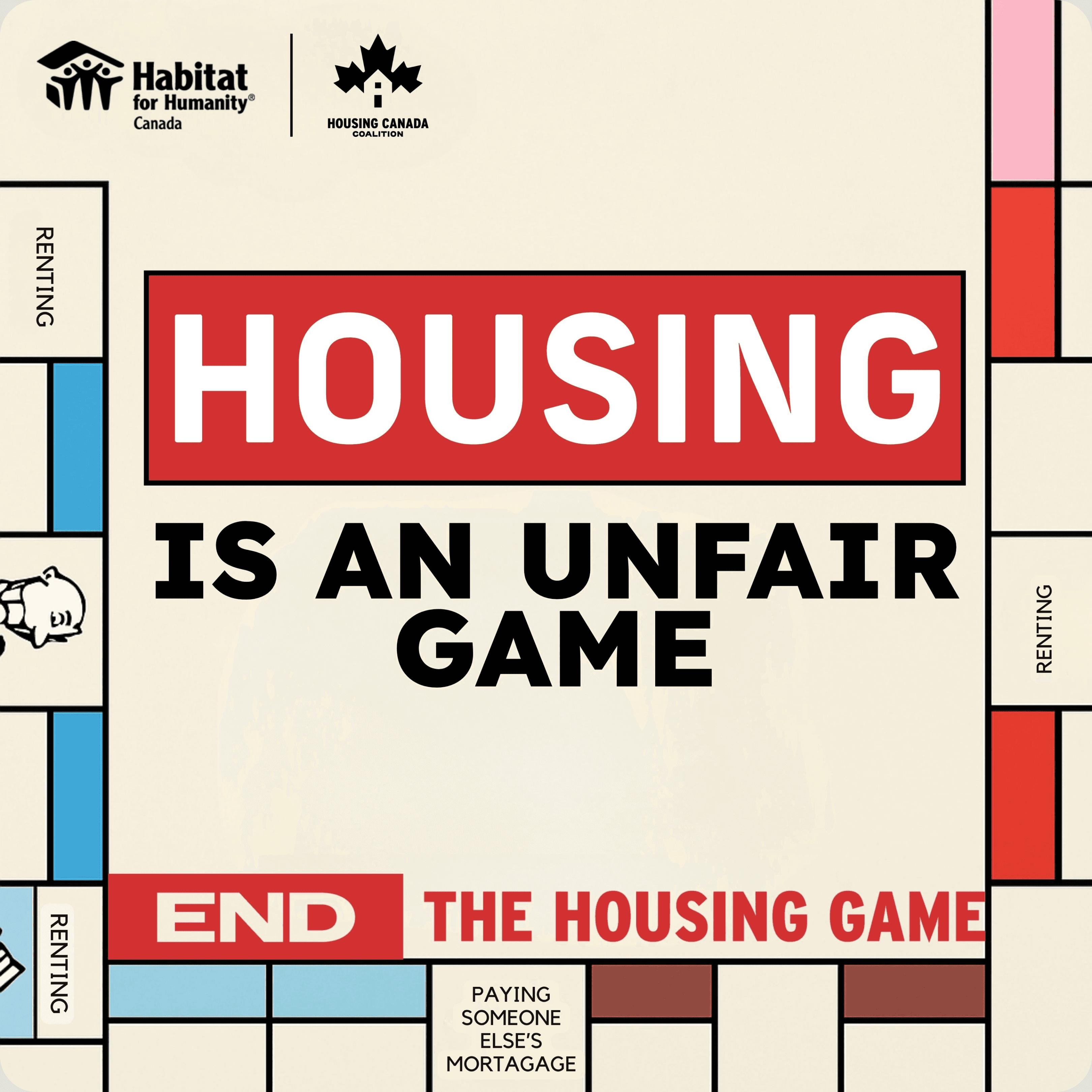 With a campaign name as invigorating as "Housing Isn't a Game," the adverts were meant to ellude to the urgency and importance of not only voting in the Canadian Election, but calling to governments to do something about the Canadian housing crisis.